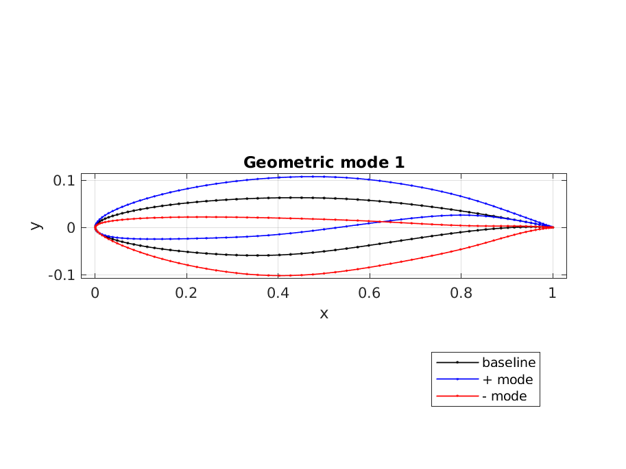 The geometric interpretation of the reduced coordinates can be visualized through modal perturbations of the baseline geometry.